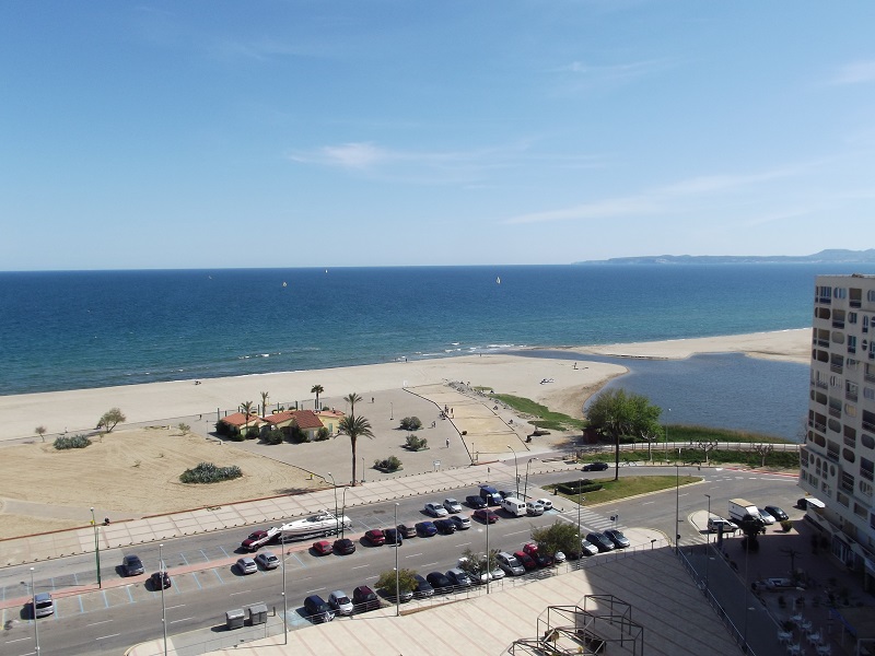1 salle de bain complète, cuisine américaine équipée, salon-séjour avec balcon fermé et très jolie vue sur toute la baie de Rosas.